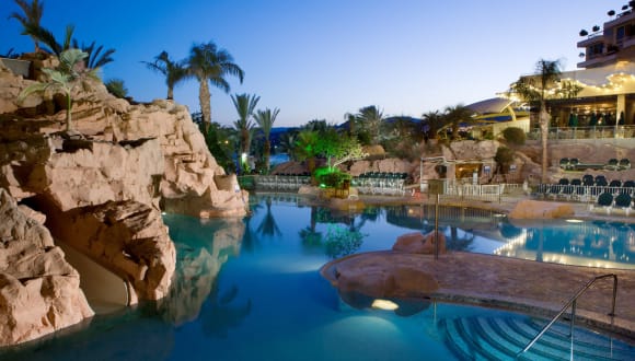 Das Dan Eilat Hotel ist ein luxuriöses Hotel direkt am Strand des Roten Meeres. Hier erwartet Sie ein einzigartiger Aufenthalt mit herrlichem Meerblick und einem vielfältigen Freizeitangebot. Genießen Sie die eleganten Zimmer, den Freiformpool mit Wasserrutsche und die verschiedenen Sport- und Wellnessmöglichkeiten. Kinder werden sich im Danyland-Club bestens unterhalten fühlen. Starten Sie Ihren Tag mit einem reichhaltigen Frühstücksbuffet und lassen Sie sich in den Restaurants und Bars des Hotels verwöhnen. Das Hotel befindet sich in zentraler Lage, nur wenige Kilometer vom Stadtzentrum von Eilat entfernt.