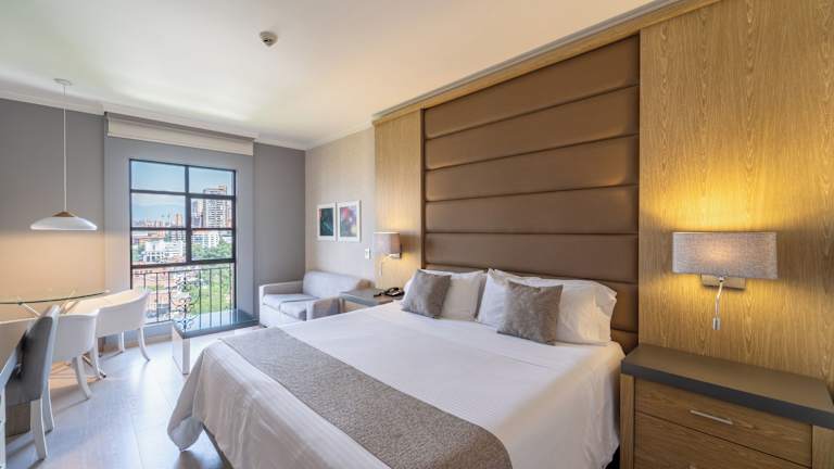 Die Zimmer im Hotel Dann Carlton Medellín sind geräumig und komfortabel. Sie verfügen über eine Klimaanlage, einen TV, eine Minibar und kostenloses WLAN. Zur Ausstattung gehören auch ein Sitzbereich und ein Schreibtisch. Einige Zimmer bieten zudem eine Terrasse mit Blick auf die Stadt.