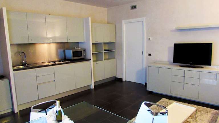 Die Apartments im Hotel Dante Residence sind modern und komfortabel eingerichtet und verfügen über einen eigenen Balkon, der einen schönen Blick auf die Umgebung bietet. Jedes Apartment ist klimatisiert und verfügt über eine voll ausgestattete Küche, einen LCD-Sat-TV und eine Minibar. Das private Badezimmer ist mit einer Hydromassage-Dusche ausgestattet, um Ihnen nach einem langen Tag der Erkundung von Mantua Entspannung zu bieten.
