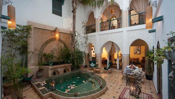 Das Riad la Cle de la Medina, location en exclusivite, ist eine ideale Wahl für Ihren Aufenthalt in Marrakesch. Das Hotel liegt nur 3 Gehminuten vom Platz Jemaa El Fna entfernt und bietet eine entspannte Atmosphäre mit einer möblierten Terrasse, einem Tauchbecken und einem schönen Garten. Genießen Sie kostenfreies WLAN und entspannen Sie in der traditionellen marokkanischen Lounge mit einem Kamin. Die Zimmer und Suiten sind komfortabel eingerichtet und verfügen über ein eigenes Bad. Beginnen Sie den Tag mit einem traditionellen Frühstück und probieren Sie regionale Spezialitäten im hoteleigenen Speisesaal. Das Riad la Cle de la Medina, location en exclusivite, organisiert auch Ausflüge in die Umgebung und bietet Schönheitsanwendungen an.