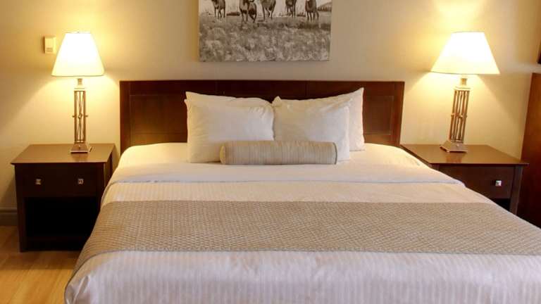 Im Hotel finden Sie das Alforno Restaurant and Pizzeria, das köstliche Gerichte serviert. Das Steakhouse bietet sowohl drinnen als auch draußen auf der Terrasse Platz und bietet eine herrliche Aussicht auf die Bighorn-Schafe beim Grasen.