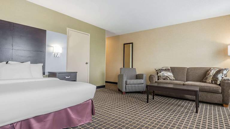 Die Zimmer im Quality Inn & Suites sind geräumig und komfortabel eingerichtet. Sie verfügen über Holzmöbel, eine Kaffeemaschine, einen Kühlschrank und kostenfreies WLAN. Jedes Zimmer hat auch einen Sitzbereich, in dem Sie sich entspannen können.
