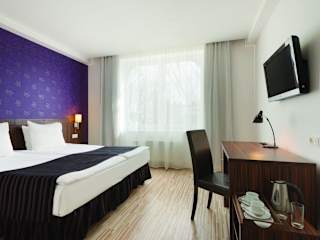 Das Hotel ist in einem ruhigen Teil von Riga gelegen, etwa 10 Minuten mit dem Auto von der historischen Altstadt entfernt. In der Nähe befindet sich eine Haltestelle für öffentliche Verkehrsmittel, von der aus der Stadtbahnhof in 15 Minuten und der Hafen in 30 Minuten erreicht werden können. Das Einkaufs- und Unterhaltungszentrum 'Domina' ist in ca. 5 Minuten zu Fuß erreichbar. Die Entfernung zum Strand beträgt ca. 25 km und weitere Entfernungen umfassen das Stadtzentrum (ca. 3 km) und den Bahnhof (ca. 2,5 km).