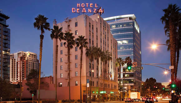 Das Hotel De Anza, ein Destination by Hyatt Hotel, bietet eine klassische Unterkunft im Herzen von San Jose. Gäste können sich auf eine Vielzahl von Annehmlichkeiten freuen, darunter ein mehrsprachiges Personal an der Rezeption, Zimmerservice für jede Mahlzeit und eine günstige Lage in der Nähe von Einkaufsmöglichkeiten und Restaurants. Die Zimmer sind komfortabel eingerichtet und verfügen über Annehmlichkeiten wie einen Flachbildfernseher, einen Kühlschrank und einen Schreibtisch. Das Hotel liegt nur wenige Gehminuten von Unterhaltungsmöglichkeiten wie dem SAO Center und dem San Jose Convention Center entfernt.