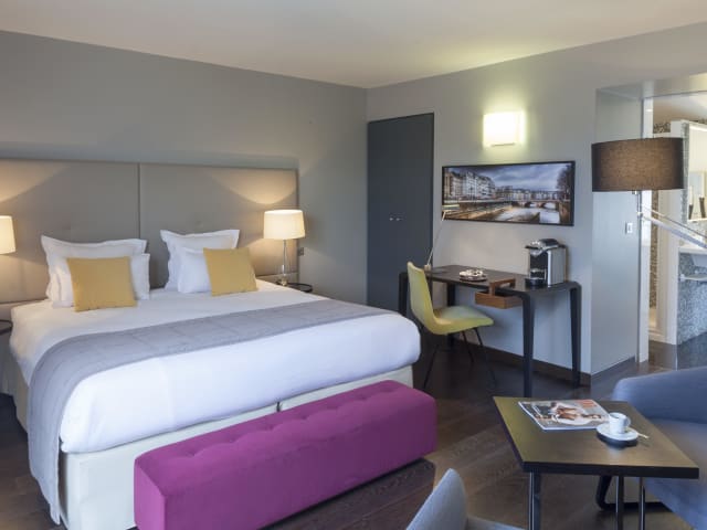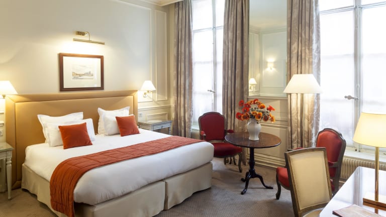 Die Zimmer im Hotel de l'Universite sind komfortabel und stilvoll eingerichtet. Sie bieten Annehmlichkeiten wie einen Flachbild-TV und eine Minibar. Die Zimmer sind mit dem Aufzug erreichbar und verfügen über kostenfreies WLAN. Die Einrichtung ist dezent und mit warmen Farbakzenten gestaltet, um eine gemütliche Atmosphäre zu schaffen.