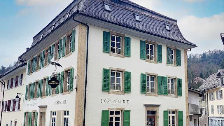 Das Hôtel de La Cigogne befindet sich in Saint-Ursanne, einer malerischen Stadt, die für ihre historische Architektur bekannt ist. Die Umgebung bietet einen ruhigen Garten und eine Terrasse, die zum Entspannen einladen.