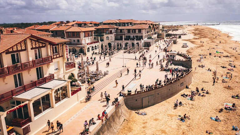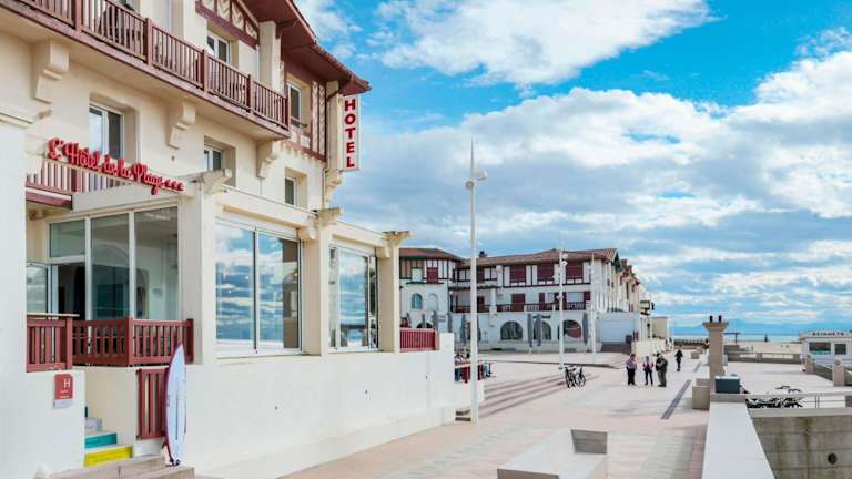 Das Hôtel de La Plage liegt an der lebhaften Place des Landais, einer Uferpromenade, die mit Surf-Shops, Bars, Restaurants und einem Casino gesäumt ist. Dieser zentrale Standort ermöglicht es Ihnen, die pulsierende Atmosphäre der Küstenstadt Hossegor voll und ganz zu genießen. Der Strand ist direkt gegenüber dem Hotel gelegen, so dass Sie jederzeit das Meer und den Sand unter Ihren Füßen erleben können.