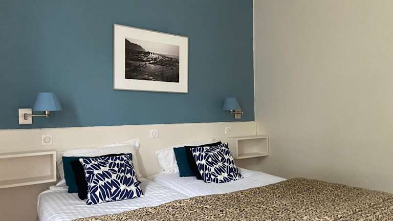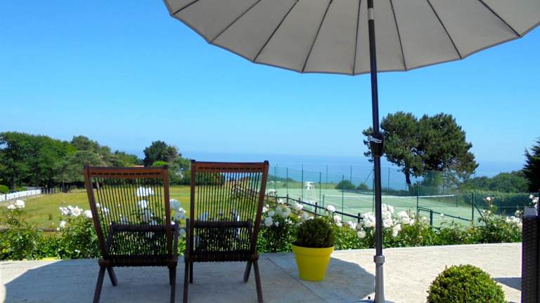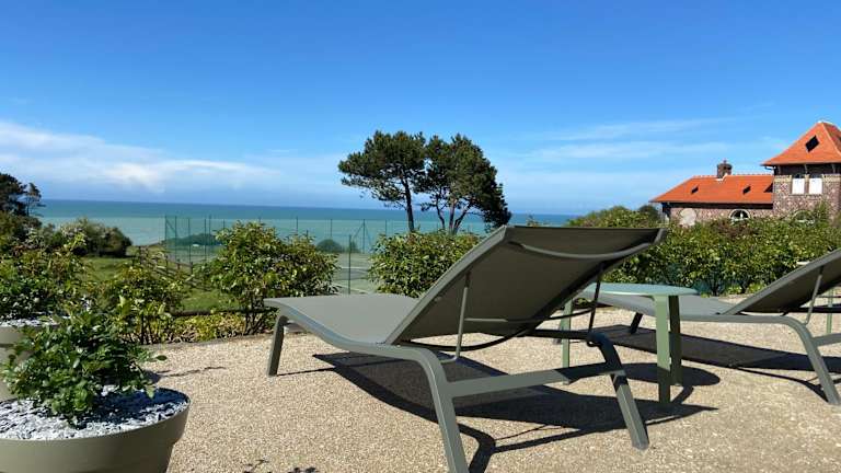 Die Zimmer im Hôtel de la Terrasse sind modern und im britischen Stil eingerichtet. Sie bieten einen komfortablen Rückzugsort mit Meerblick oder einer Aussicht auf die umliegende Landschaft. Zur Ausstattung gehören ein Telefon und ein eigenes Bad mit Badewanne oder Dusche. Kostenloses WLAN und Parkplätze stehen den Gästen zur Verfügung.