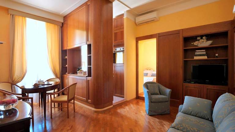 Das Dea Suite Roma bietet elegante Suiten, die mit gelben und goldenen Farben, Möbeln aus Kirschholz und Holzböden gestaltet sind. Jede Suite verfügt über eine Küche oder Kochnische, in der Sie Ihre eigenen Mahlzeiten zubereiten können. Zur weiteren Ausstattung gehören ein Flachbild-TV und ein Balkon, auf dem Sie den Blick über die Stadt genießen können. Die Reinigung erfolgt täglich, damit Sie sich stets in einer sauberen und gemütlichen Umgebung wohlfühlen können. Bei Ihrer Ankunft finden Sie eine Nespresso-Kaffeemaschine sowie Tee und Kekse in Ihrer Suite, um Ihren Aufenthalt noch angenehmer zu gestalten.