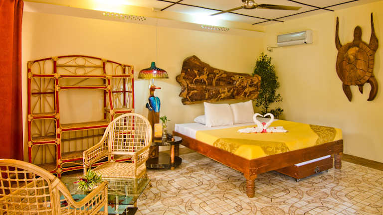 Die Zimmer im Deep Forest Garden Hotel sind geräumig und offen gestaltet, mit traditionellen Holzelementen dekoriert und bieten modernen Komfort. Jedes Zimmer verfügt über eine Klimaanlage, einen Flachbild-Kabel-TV und einen Safe. Sie können sich also in Ihrem Zimmer entspannen und die Annehmlichkeiten genießen.