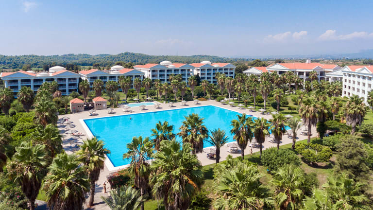 Zum leicht abfallenden Sandstrand sind es ca. 490 m. Für den Weg zum Strand steht ein kostenloser Shuttle-Service zur Verfügung. Bis Side sind es ca. 13 km und die Provinzhauptstadt Manavgat ist 16 km entfernt. Minibusverbindungen und ein Taxistand sind vorhanden.