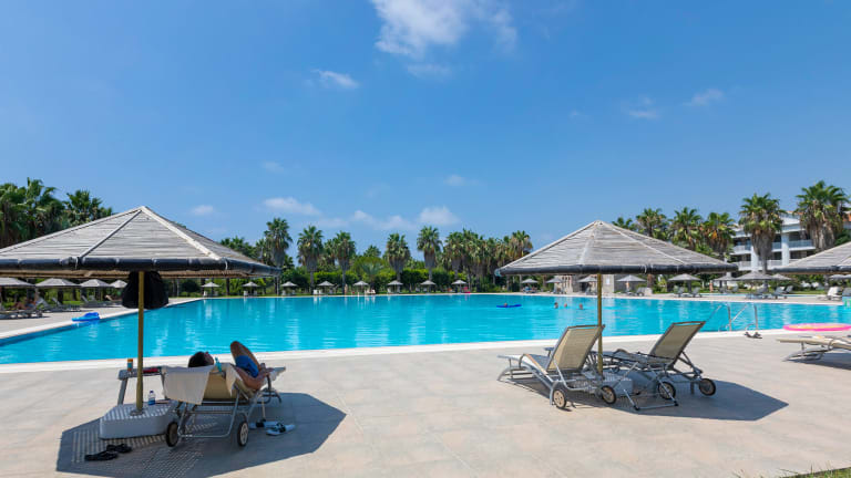 Das bekannte und beliebte Hotel der Defne Hotelgruppe verfügt insgesamt über eine Fläche von fast 48.000 m2 und liegt inmitten einer weitläufigen Gartenanlage. Es besteht aus drei- und vierstöckigen Gebäudekomplexen mit insgesamt 169 Zimmern. Zu den Einrichtungen zählen die Rezeption mit moderner Lobby, Lifts, das Mare Nostrum Hauptrestaurant (internationale Küche) mit Außenterrasse (Nichtraucherzone), das A la Carte Temple Restaurant (12.00 bis 16.00 Uhr,(internationale Küche) gegen Gebühr), ein TV-Raum, Bars (Temple Bar, Agora Bar und Eucalyptus Bar) und die Beach Bar (von 08:00 bis 18:00 Uhr nur Getränke vorhanden). In der ca. 29.000 m2 großen Gartenanlage befindet sich ein Swimmingpool (ca. 2.000 m2) und ein ca. 410 m2 großes Hallenbad (in der Vor-/Nachsaison wetterbedingt beheizt und geöffnet). Wi-Fi ist am Strand, im Garten, Lobby, Pool- und Barbereich inklusive. Am Strand, Pool und in der Gartenanlage stehen unseren Gästen Liegen, Auflagen, Sonnenschirme und Strandtücher (im Zimmer) kostenlos zur Verfügung. Arzt-Service (gegen Gebühr).