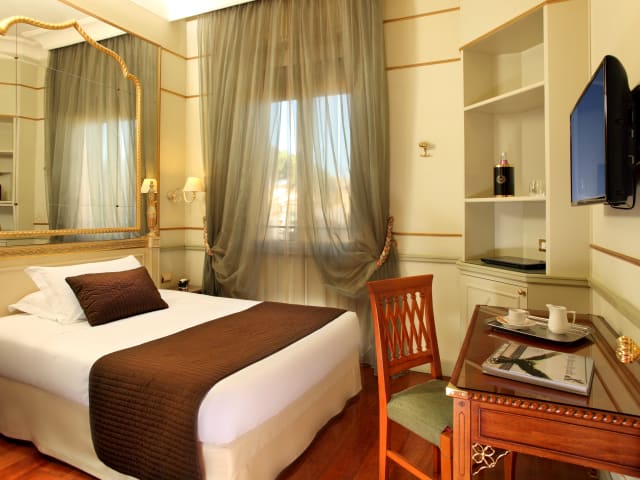 Das Hotel Degli Aranci befindet sich in Parioli, einem eleganten Stadtteil von Rom, direkt hinter der Villa Borghese. Die Lage des Hotels ist ruhig und von einer Allee mit Eichen und Orangenbäumen umgeben. In der Umgebung gibt es zahlreiche Einkaufsmöglichkeiten und Restaurants. Die berühmte Via Veneto ist nur ca. 3 km entfernt. Der Flughafen Ciampino ist etwa 30 km entfernt und der Flughafen Fiumcino ist ca. 35 km entfernt.