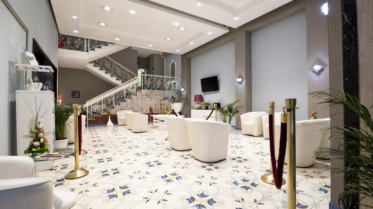 Das Hotel del Sole liegt direkt vor der Ausgrabungsstätte von Pompeji, was es zu einem idealen Ausgangspunkt macht, um diese historische Stätte zu erkunden. Der Bahnhof Pompei ist nur 10 Gehminuten entfernt und der Flughafen Neapel kann mit dem Auto in 20 Minuten erreicht werden.