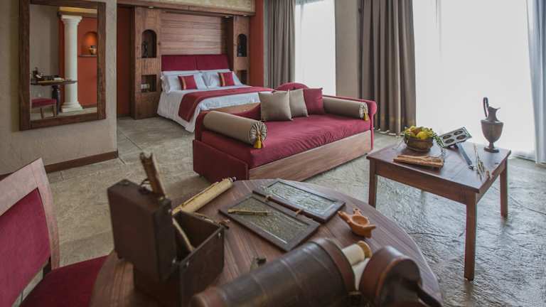 Im Restaurant Hermes Café mit Ruhebereich können Sie die herrliche Aussicht auf die Ausgrabungsstätte von Pompeji genießen. Hier wird Ihnen jeden Morgen ein Frühstück mit süßen und herzhaften Speisen serviert. Das Restaurant ist auch zum Mittag- und Abendessen geöffnet und bietet Ihnen typisch italienische Spezialitäten.
