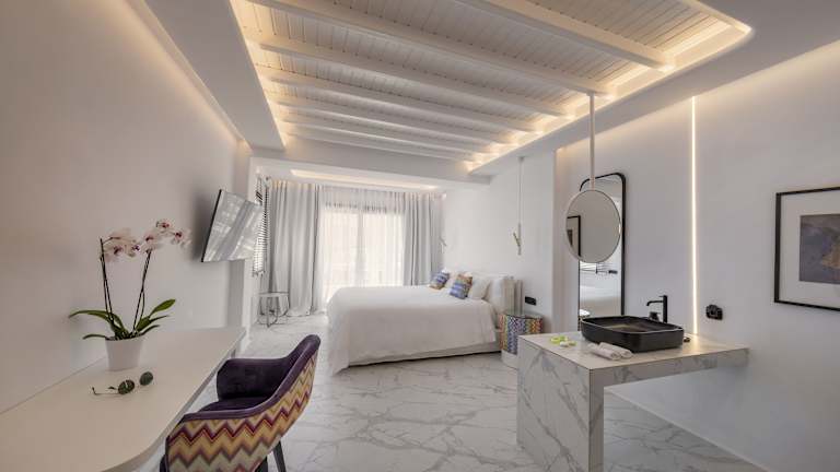 Im Deliades Hotel erwarten Sie geräumige Zimmer und Suiten, die alle klimatisiert und mit modernen Annehmlichkeiten ausgestattet sind. Genießen Sie den Blick auf die Bucht und die Stadt von Ihrem eigenen Balkon oder Ihrer Terrasse. Die Zimmer werden zweimal täglich gereinigt und bieten Ihnen somit immer einen sauberen und komfortablen Rückzugsort.
