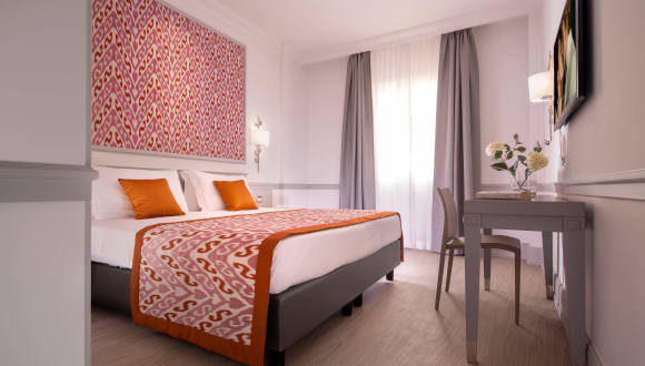Das Hotel Della Conciliazione bietet eine ideale Lage, nur 100 m vom Petersdom entfernt. Die Unterkunft verfügt über klimatisierte Zimmer mit Flachbild-TV und handgearbeiteten italienischen Möbeln. Die typisch römische Fassade des 4-stöckigen Gebäudes und die klassisch eingerichtete Empfangshalle verleihen dem Hotel einen charmanten Charakter. Die Bushaltestelle der Linie 40 Express befindet sich nur 2 Gehminuten entfernt und bietet eine direkte Verbindung zum Bahnhof Roma Termini. In der Nähe des Hotels gibt es auch ein Restaurant, in dem Gäste von Ermäßigungen profitieren können. Der U-Bahnhof Ottaviano, an dem die Linie A verkehrt, ist nur 10 Gehminuten entfernt und der Bahnhof San Pietro, der eine direkte Verbindung zum Flughafen Rom-Fiumicino bietet, ist ebenfalls in 10 Gehminuten zu erreichen.