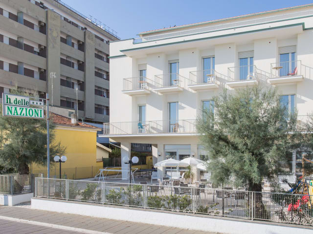 Im Hotel Delle Nazioni fühlen Sie sich auch im Urlaub wie zu Hause. Und hinzu kommt...dass der Strand so nah ist, dass man barfuß dort hinlaufen kann. Das 3-Sterne Hotel "Delle Nazioni" in Bellaria erwartet Sie mit Höflichkeit und Gastfreundschaft - welche alle Hotels der Valentini Village Group charakterisieren. Das interessante und aussergewoehnliche ist die Lage des Hotels Delle Nazioni: Mit frontalem Meerblick und direkt an der Strandpromenade von Bellaria in Via Cristoforo Colombo ist es eine Raritaet unter den Hotels.