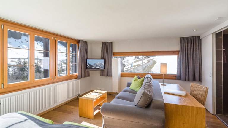 Im hoteleigenen À-la-carte-Restaurant können Sie traditionelle Schweizer Küche genießen. Das Restaurant bietet auch hausgemachtes Eis in vielen verschiedenen Geschmacksrichtungen an. Die Sonnenterrasse des Hotels lädt zum Entspannen ein und bietet einen herrlichen Blick auf die umliegenden Berge.