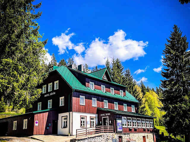 Die Gegend um das Hotel Děvín bietet zahlreiche Möglichkeiten für sportliche Aktivitäten. Im Winter können Sie die nahegelegenen Skilifte nutzen und die Pisten hinunterfahren. Im Sommer eignet sich die hügelige Waldregion von Děvín perfekt zum Wandern und Radfahren. Auch Langlaufausflüge sind hier sehr beliebt. Entdecken Sie die vielfältige Natur und die atemberaubende Landschaft des Nationalparks Riesengebirge.