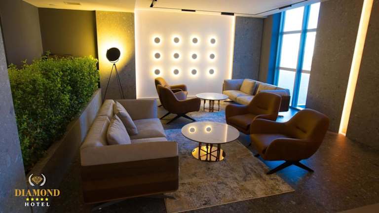 Das Hotel Diamond Prishtina ist eine moderne Unterkunft, die vielfältige Annehmlichkeiten bietet, dazu zählen ein Fitnesscenter, kostenloser Privatparkplatz, eine Gemeinschaftslounge und eine Terrasse. Ein kostenloser Shuttle-Service und ein Rund-um-die-Uhr verfügbarer Zimmerservice zählen ebenfalls zu den Angeboten. WLAN steht den Gästen kostenfrei zur Verfügung. Das Hotel bietet zudem ein Spa- und Wellnesscenter mit einem Innenpool, einer Sauna und einem Whirlpool.