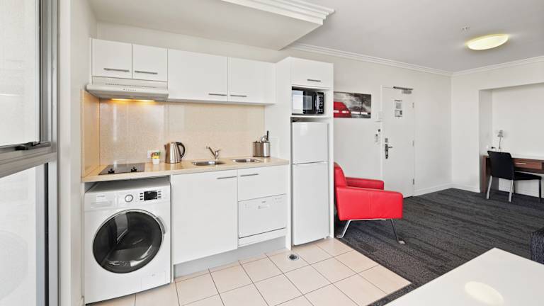 Die Unterkünfte umfassen Studios sowie Apartments mit 1 oder 2 Schlafzimmern, ausgestattet mit Flachbild-TV und DVD-Player. Die Apartments sind mit einer voll ausgestatteten Küche inklusive Mikrowelle, Toaster, Kühlschrank und Wasserkocher versehen, während die Studios über eine Küchenzeile verfügen.