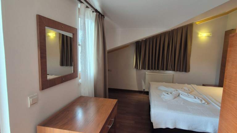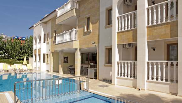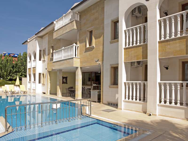 Das Dinara Hotel in Kemer bietet eine ideale Lage, nur 400 m vom Sandstrand entfernt. Mit seinem einzigartigen architektonischen Stil und dem eleganten Balkongeländer verspricht es einen unvergesslichen Aufenthalt. Das Hotel verfügt über einen Außenpool, eine Sauna und komfortable klimatisierte Zimmer. Genießen Sie Ihre Mahlzeiten im À-la-carte-Restaurant oder am Pool und entspannen Sie sich in der schönen Umgebung. Die antike lykische Stadt Phaselis ist ebenfalls einen Besuch wert und der Flughafen Antalya ist nur 60 km entfernt. Ein Flughafentransfer kann auf Anfrage organisiert werden.