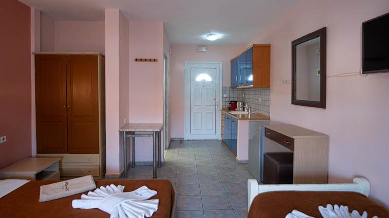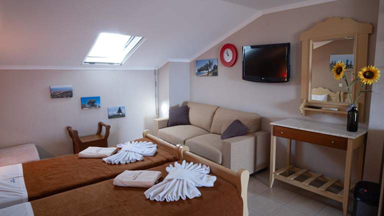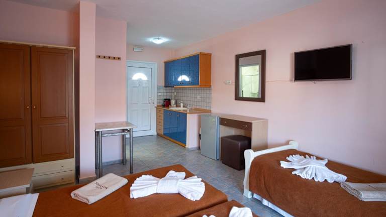 Die Zimmer im Hotel Dionysos sind mit Klimaanlage, einem Sitzbereich, einem Flachbild-TV mit Satellitenkanälen sowie einer Küchenzeile und einem Essbereich ausgestattet. Jedes Zimmer verfügt über ein eigenes Badezimmer mit kostenlosen Pflegeprodukten, einer Dusche und einem Haartrockner. Zu den Annehmlichkeiten gehören zudem eine Kaffeemaschine und im Fall bestimmter Zimmer ein Balkon oder Meerblick. Bettwäsche und Handtücher sind ebenfalls in jedem Zimmer vorhanden.