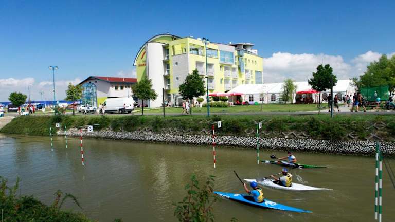 Das Hotel and Park Divoká Voda bietet eine ideale Lage direkt an der Donau und ist etwa 20 km südlich des Stadtzentrums von Bratislava gelegen. Es bietet zahlreiche Aktivitäten in der Umgebung, darunter Rafting, Jetski, Quads und Paintball. Die freundlich eingerichteten Zimmer sind klimatisiert und die meisten verfügen über einen Balkon. Das Hotelrestaurant serviert Ihnen Spezialitäten der nationalen und internationalen Küche, die Sie auf der großen Sommerterrasse genießen können. Ein Wellnessbereich mit Whirlpool und Sauna auf der Dachterrasse sowie Konferenzräume runden das Angebot ab. WLAN und Parkplätze stehen Ihnen kostenlos zur Verfügung.