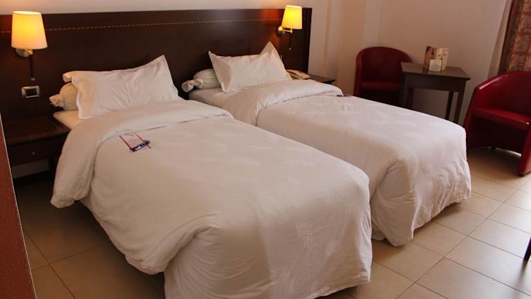 Die Zimmer im Djeuga Palace Hotel sind komfortabel und modern eingerichtet. Jedes Zimmer verfügt über Annehmlichkeiten wie Klimaanlage, einen Flachbild-Sat-TV und einen Schreibtisch. Das private Badezimmer ist mit kostenfreien Pflegeprodukten und einem Haartrockner ausgestattet. Wählen Sie zwischen verschiedenen Zimmertypen, die einen Blick auf die Stadt, den Pool, den Innenhof oder die Straße bieten.