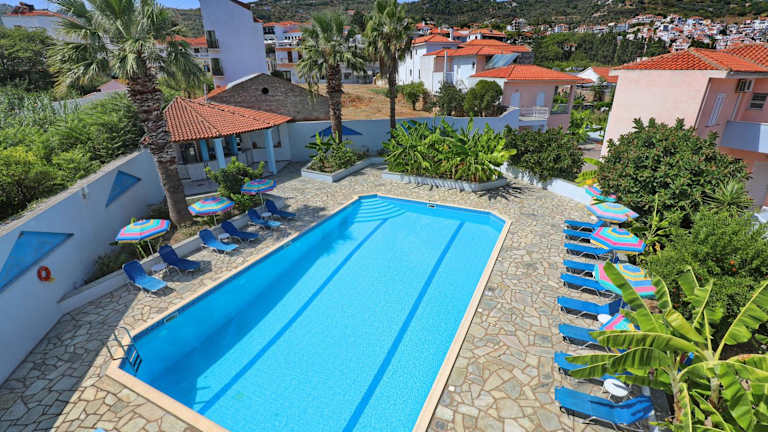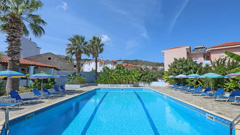 Das Dolphin Hotel liegt in der Nähe des Strandes, so dass Sie leicht zugänglich sind, um sich in der Sonne zu entspannen und im klaren Wasser zu schwimmen. Darüber hinaus bietet Skopelos eine Vielzahl von Freizeitaktivitäten wie Wandern, Radfahren und Bootstouren, die Sie während Ihres Aufenthalts genießen können.
