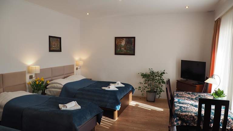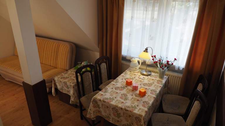 Das Hotel verfügt über einen ausgewiesenen Grillplatz, auf dem Sie Ihre eigenen Mahlzeiten zubereiten können. Alternativ können Sie im hoteleigenen Speisesaal speisen, der polnische und internationale Gerichte serviert. Genießen Sie köstliche Speisen in einer gemütlichen Atmosphäre und lassen Sie sich von den kulinarischen Köstlichkeiten verwöhnen.