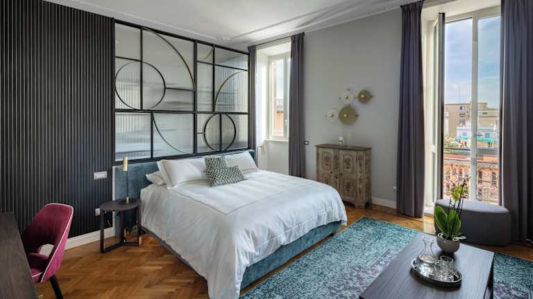 Das Hotel bietet eine Auswahl an Zimmern und Junior-Suiten auf fünf Etagen, die mit einem Aufzug erreichbar sind. Die Zimmer sind mit einer Klimaanlage, einer Heizung, einem Doppelbett, einem Safe, einer Minibar, einem Schreibtisch, einer Tee-/Kaffeemaschine und kostenfreiem WLAN ausgestattet. Die Badezimmer verfügen über eine Dusche, eine Badewanne, ein Bidet, einen Haartrockner und Bademäntel. Nichtraucherzimmer sind verfügbar.