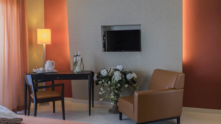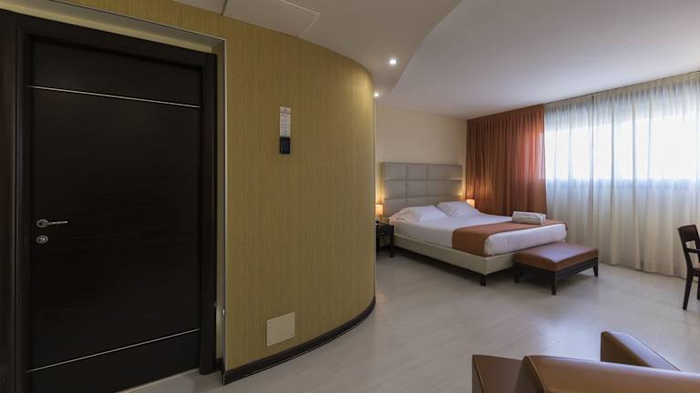 Die Zimmer im Hotel Donatello Imola sind geräumig und bieten den Gästen einen komfortablen Rückzugsort. Die meisten Zimmer verfügen über einen eigenen Balkon und sind klimatisiert. Die Zimmer sind mit Parkett- oder Teppichböden ausgestattet und bieten modernen Komfort.