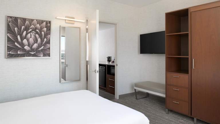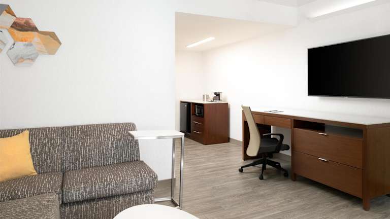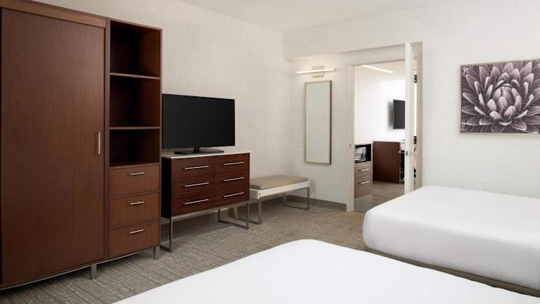 Die klimatisierten Gästezimmer im DoubleTree Suites by Hilton Phoenix bieten viel Platz und Komfort. Zur Ausstattung gehören eine Küche, ein separater Wohnbereich und ein Badezimmer. Kostenloses WLAN und ein TV mit Pay-per-View-Kanälen sorgen für Unterhaltung.