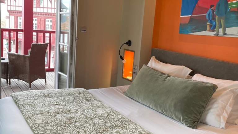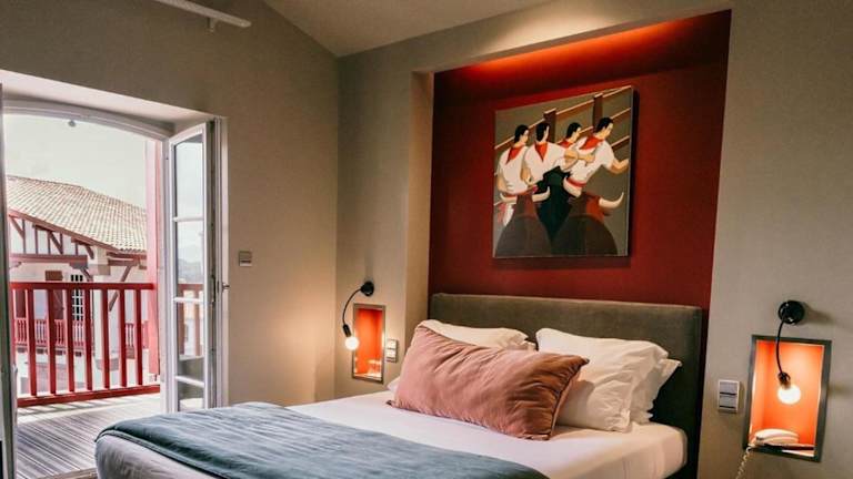 Das Hotel du Fronton in Bidart bietet Ihnen einen einzigartigen Aufenthalt in Designer-Zimmern mit kostenfreiem WLAN. Genießen Sie den Blick auf das Meer und die Berge und entspannen Sie nur 5 Gehminuten vom Strand entfernt. Das Hotel besticht durch modernes Dekor und Gemälde von regionalen Künstlern aus dem Baskenland. Starten Sie Ihren Tag mit einem köstlichen kontinentalen Frühstück und lassen Sie sich von Zimmerservice verwöhnen. Die zentrale Lage des Hotels ermöglicht es Ihnen, die umliegenden Städte Biarritz und Saint-Jean-de-Luz zu erkunden und die meisten Sommerveranstaltungen auf dem Hauptplatz der Ortschaft zu genießen. Der internationale Flughafen Biarritz ist nur 6 km entfernt und San Sebastián erreichen Sie in nur 30 Minuten Fahrt.