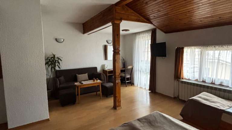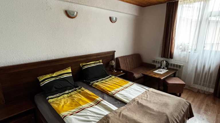 Das Durchova Kashta Family Hotel bietet komfortable Zimmer, die alle mit modernen Annehmlichkeiten ausgestattet sind. Einige Zimmer verfügen über einen eigenen Kamin, der eine gemütliche Atmosphäre schafft. Jedes Zimmer verfügt über einen eigenen Balkon, von dem aus Sie einen atemberaubenden Panoramablick auf die umliegenden Berge genießen können.