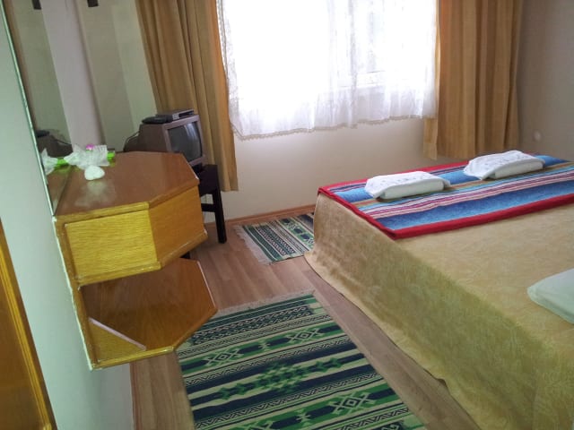 DURU FAMILY OTEL ist Ihr sauberes und hygienisches Haus in Antalya, das angemessen für Ihrem Haushalt ist, in dem Sie sich mit Ihrer Familie immer gemütlich aufhalten können. Im Hotel befinden sich insgesammt 23 Zimmer und ein Pool. Sie haben die Möglichkeit die Zimmer mit oder ohne Frühstück zu reservieren. In DZ (ohne Balkon) gibt es einen Kleiderschrank, Dusche/WC, 24 Std lang warmes Wasser, Klimaanlage und TV. In Größeren Zimmern (für 3-4 Personen) befinden sich ebenfalls einen Kleiderschrank, Dusche/WC, 24 Std lang warmes Wasser, Klimaanlage und TV. 8 von diesen Zimmern sind mit Balkon. Im Lobby und in der Cafeteria ist die W-LAN-Verbindung kostenlos. In der Cafeteria können Sie TV anschauen, Okey/Backgammon/Domino/Schach spielen und Tageszeitungen lesen. Sie können kostenlos Fahrräder ausleihen und rund um unseren Hotel einen Radtour machen. Der Pool ist für Erwachsenen geeignet, daher können die Kinder mit der Beaufsichtigung der Eltern nutzen. Ein Autopark befindet sich nicht. Wäsche- und Bügelservice für Shirts, Hosen, Kleider usw ist Kostenpflichtig. DURU FAMILY OTEL ist 8 km vom Flughafen, 0,7 km von Lara Beach, 8 km von Stadt (Kaleici) entfernt. Große Einkaufs-Centren befinden sich Deepo 6 km, Laura 4 km, SheMall 4 km, Terra City 3 km weit weg. Berühmte „Cumartesi pazari“ also „Samstags Basaar“ befindet sich eben falls in der Nähe. 100-150 Meter entfernt vom DURU FAMILY OTEL befinden sich alle Arten von Geschäften, Läden, Restaurants, Büros, Krankenhäuser, Postamt und 3 verschiedene Bank und Bankautomaten um Ihre Bedürfnisse gelten zu lassen Düden Wasserfall (vom Hotel ca 300 Meter entfernt) fällt hier ins Meer. Parks mit Sportgeräten und Radwege, die auch für Jogging geeignet sind, befinden sich in der Nähe. Beförderung in alle Orte Antlaya´s wird mit Busse und Minibusse geboten, die 50-60 Meter entferneter Bushaltestelle in alle 5 Minuten fahren. Für unseren jüngeren Gästen, (die mit Ihren Eltern im gleichen Zimmer bleiben) haben wir einen Preisangebot wie unten: 0-6 Jahren kostenlos 7-12 Jahren 50 % reduziert. Je nach Wunsch können wir für Sie einen Service vom und zum Flughafen für 15€ pro Person oder 25€ bis 4 Personen organisieren.