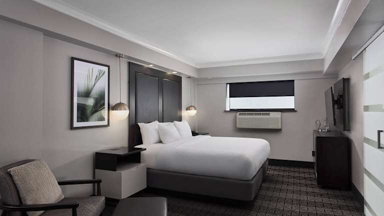 Die Zimmer sind komfortabel ausgestattet und verfügen über eine Klimaanlage, Heizung, ein Queensizebett, ein Sofabett, eine Minibar sowie einen Schreibtisch. Zudem sind Kühlschrank, Mikrowelle, Tee-/Kaffeemaschine und ein Bügelset vorhanden. Ein TV-Gerät mit Satelliten-/Kabelempfang sowie WLAN sind ebenfalls im Zimmer verfügbar. Die Badezimmer sind mit einer Dusche sowie Haartrockner und Bademänteln ausgestattet, und es stehen Kosmetikartikel sowie eine Auswahl an Handtüchern zur Verfügung. Zur Verfügung stehen auch rollstuhlgerechte Zimmer.