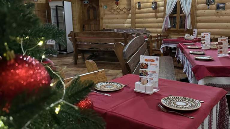 Im ukrainisch gestalteten Kolyba Restaurant des Hotels können Sie landestypische Gerichte probieren. Das Restaurant bietet auch eine Terrasse, auf der Sie Ihre Mahlzeiten im Freien genießen können. Für ein besonderes Erlebnis steht Ihnen auch ein Grillplatz zur Verfügung.
