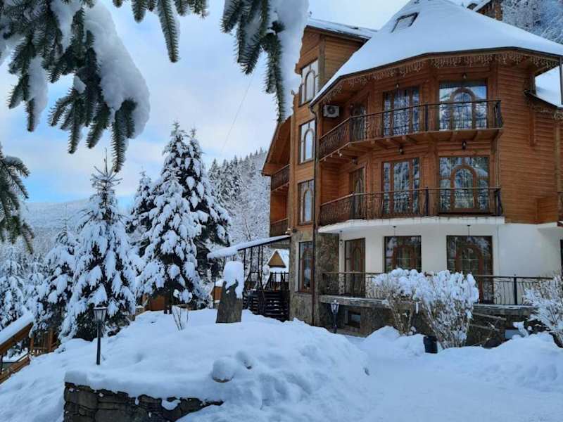 Das Hotel Dykyi Med liegt in den Karpaten, nur 4 km vom Dorf Tatariv entfernt. Die Lage ist ideal, um die beeindruckende Landschaft der Karpaten zu erkunden. Wanderwege zum Berg Khomyak beginnen nur 5 Gehminuten vom Hotel entfernt. Das Skiresort Bukovel ist ebenfalls in der Nähe, nur 15 km entfernt. Der Bahnhof Mykulychin liegt 7 km vom Hotel entfernt und bietet eine gute Anbindung nach Ivano-Frankivsk.