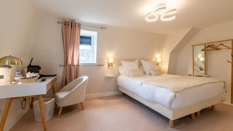 Die Zimmer im Hôtel Échappée en Baie - Parking privé gratuit sind komfortabel und gemütlich eingerichtet. Jedes Zimmer verfügt über einen Schreibtisch, einen Flachbild-TV, ein eigenes Bad, Bettwäsche und Handtücher. Ein Safe und kostenfreies WLAN sind ebenfalls vorhanden. Einige Zimmer bieten einen schönen Blick auf den Garten. Für zusätzlichen Komfort sind alle Zimmer mit einem Kleiderschrank und einer Kaffeemaschine ausgestattet.