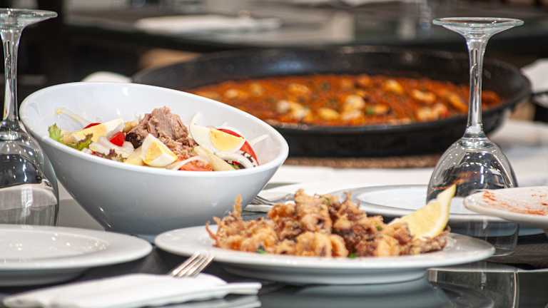Das Hotelrestaurant serviert ein abwechslungsreiches Buffet zum Frühstück und bietet ein festes Mittagsmenü mit mediterraner Küche an. Die Café-Bar lädt zum Entspannen und Genießen ein.