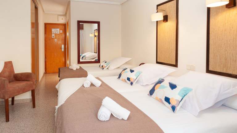 Das Hotel Eden Mar verfügt über 37 Zimmer auf 4 Etagen, die bequem mit einem Aufzug erreichbar sind. Die Zimmer sind klimatisiert und bieten ein helles und modernes Interieur. Zur Ausstattung gehören Sat-TV, kostenfreie Pflegeprodukte und WLAN. Einige Zimmer verfügen über einen Balkon oder eine Terrasse.