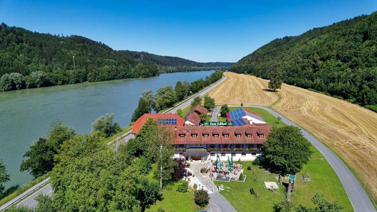 Das Landhotel Zum Edlhof liegt zwischen der Dreiflüssestadt Passau und dem Markt Obernzell, direkt am Radweg Passau-Wien. Die Lage bietet eine ideale Ausgangsbasis, um die Region zu erkunden. Der Radweg führt direkt vor der Tür entlang und lädt zu entspannten Radtouren ein. Für Naturliebhaber bietet der Bayerische Wald unzählige Wanderwege und atemberaubende Landschaften. Kulturliebhaber können die Sehenswürdigkeiten von Passau, wie den Dom St. Stephan, das Veste Oberhaus oder die Altstadt, erkunden.