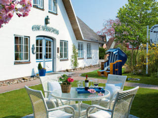 Das Hotel Ekke Nekkepenn bietet einen schönen Garten mit Gartenmöbeln und Strandkörben, in dem Sie entspannen und die frische Nordseeluft genießen können. Nutzen Sie die Gelegenheit, die Umgebung zu erkunden und die friesische Architektur sowie die Sehenswürdigkeiten der Insel Amrum zu entdecken.