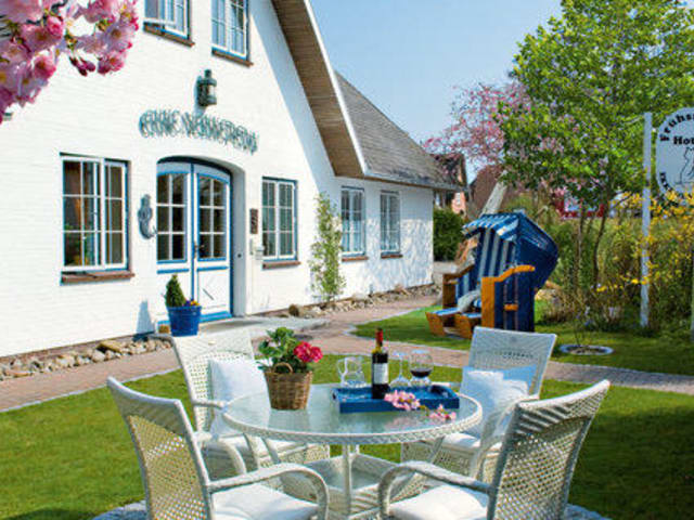 Verbringen Sie einen unvergesslichen Aufenthalt im Hotel Ekke Nekkepenn im historischen Zentrum von Nebel auf der Nordseeinsel Amrum. Das familiengeführte Hotel bietet geschmackvoll gestaltete Zimmer mit handgefertigten Möbeln aus 200-jährigem Kiefernholz. Genießen Sie jeden Morgen ein reichhaltiges Frühstücksbuffet und erkunden Sie die charmante friesische Architektur der Insel.