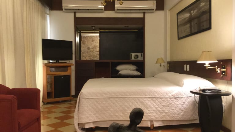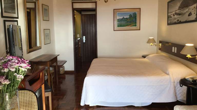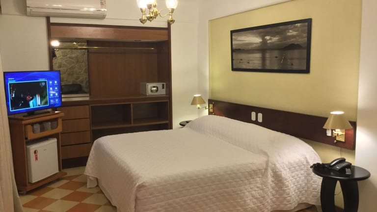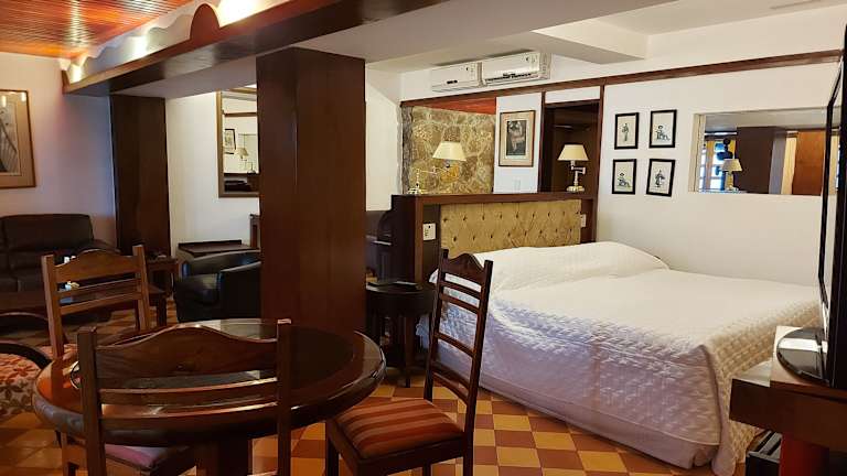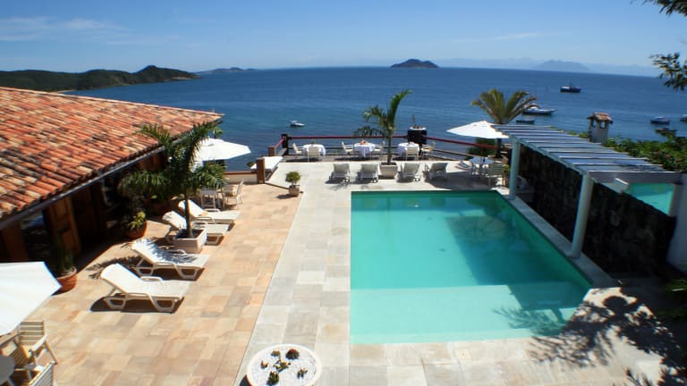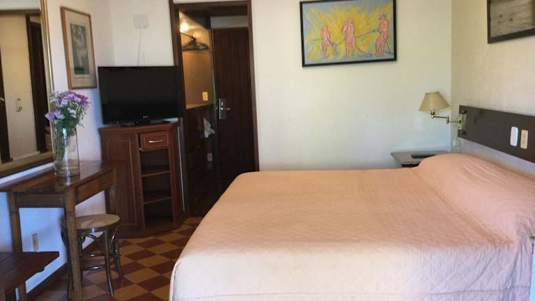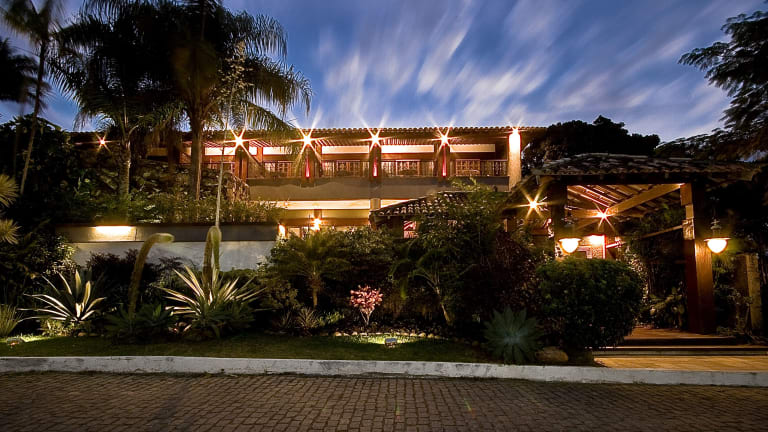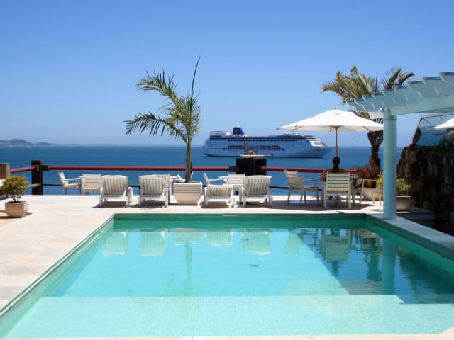 Das Hotel El Cazar in Búzios bietet einen traumhaften Panoramablick über die Bucht und ist perfekt gelegen, nur wenige Meter vom Strand, Restaurants und Geschäften entfernt. Hier können Sie sich im Whirlpool und in der Sauna entspannen und den Sonnenliegen am Außenpool genießen. Das Hotel bietet auch Tennisplätze und ein Fitnessstudio für sportliche Aktivitäten. Die Zimmer sind komfortabel eingerichtet und einige bieten einen herrlichen Meerblick. Probieren Sie köstliche Meeresfrüchte im hoteleigenen Restaurant und lassen Sie sich von der 24-Stunden-Rezeption und der Autovermietung unterstützen.