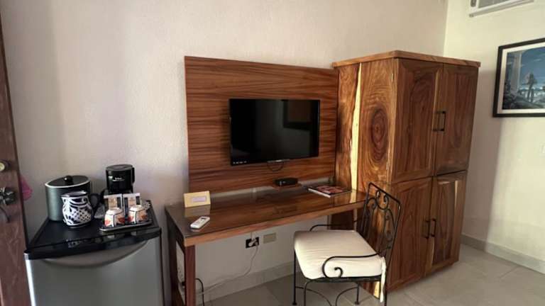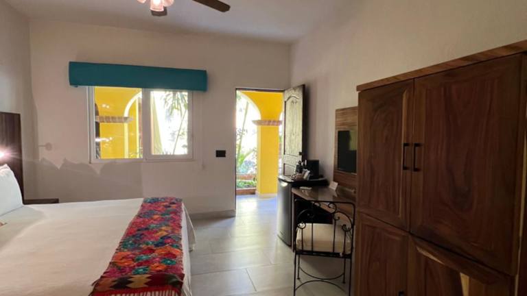 Das Hotel verfügt über 27 Zimmer, die sich auf zwei separate Gebäude verteilen. Jedes Zimmer ist im mexikanischen Hacienda-Stil gestaltet und bietet eine gemütliche Atmosphäre. Zur Ausstattung gehören Kabel-TV, ein Badezimmer und einige Zimmer verfügen über eine Küchenzeile und einen Essbereich. Einige Zimmer bieten zudem einen Balkon mit Blick auf den Außenpool oder den Garten mit Privatkapelle.