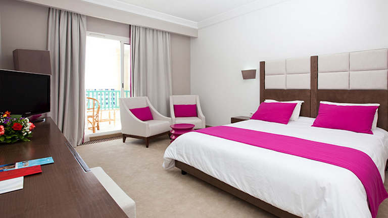 Die Zimmer sind klimatisiert und verfügen über einen Balkon oder eine Terrasse mit Meerblick. Ausgestattet mit Teppichböden, umfassen die Unterkünfte Doppelbetten oder Kingsize-Betten, einen Safe, einen Minikühlschrank, ein Telefon mit Direktwahl und TV mit Satellitenanschluss. Die Badezimmer sind mit Dusche, Badewanne und Bidet ausgestattet.